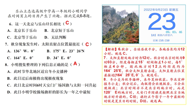 秋分时节,让我们来共同探究一下地理人眼中的秋分吧。
