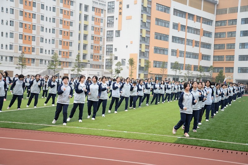 四发礼炮齐鸣,高2025届全体同学进行了学校原创的《一起向未来》韵律操比赛展演。同学们气势高昂、步调一致,动作标准娴熟、舒展自然、飒爽利落,展现出了他们扎实的基本功和严肃、活泼、团结的精神面貌。