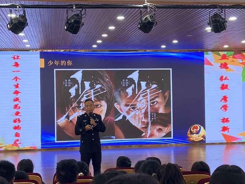 警校手牵手,共同创平安。以案说法,郭警官用通俗易懂的话语围绕校园欺凌的危害、校园欺凌的形式、如何预防和应对校园欺凌等主题进行了讲解。他联系实际,从生动鲜活、触目惊心的青少年犯罪案例切入,辅以通俗易懂、简单实用的法律知识,告诫同学们要引以为戒,做遵守法律的好公民。