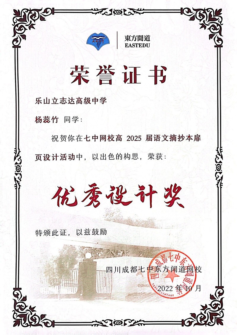 l 七中网校高2025届语文摘抄本扉页设计活动 优秀设计奖