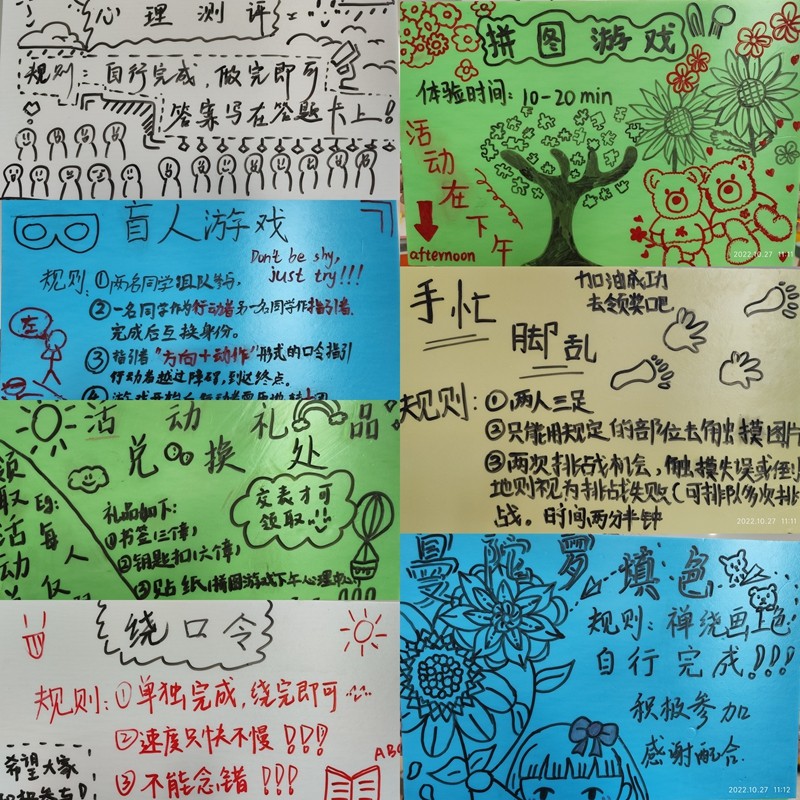 10月31日,伴随运动会的枪响,心理专题各项活动在学校架空层有序铺开,由一张“活动单”开启一场发现自我之旅。