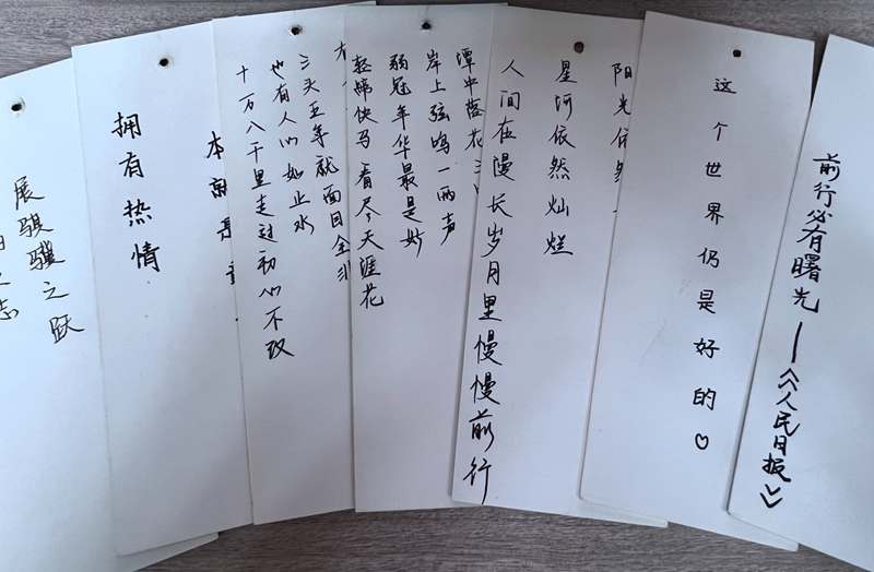 一张书签,一个歌词钥匙扣,一枚贴纸,传递温情,温暖心灵。