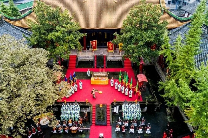 “人之初,性本善……”您听,这是从全国四大文庙之一的犍为文庙中传来的经典传诵之声。犍为文庙始建于北宋年间,规模宏伟,整个建筑坐北朝南,以大成殿为中心,以南北为中轴线呈现对称左右布局,各色木石雕刻独具特色。2006年,犍为文庙被列为了第六批国家重点文物保护单位,成为家乡标志性建筑之一。走进犍为文庙,在孔子及其杰出弟子雕像群的注视下观碑看文,古风古韵气息萦绕,我仿佛看到了前辈先贤于此交流思想的风雅壮观场景,无限神往。儿时,我就读的犍为县新城小学曾在这里举办过第三届“世纪杯”中华好诗词大赛,我还获过三等奖呢。近年来,犍为文庙复兴了祭孔仪式、入泮礼、成年礼等传统仪式,使之成为了犍为乃至整个乐山人的精神家园。每逢中高考,学生们都会络绎前来,在拜台两侧系上红丝带祈福。时光流转千年,千言万语诉不尽文庙的历史;沧海桑田,光阴承载了来往学子们的寒窗夙愿。盛夏,阳光洒满庭院,润泽着这一方的莘莘学子,汇聚成千年的文脉!