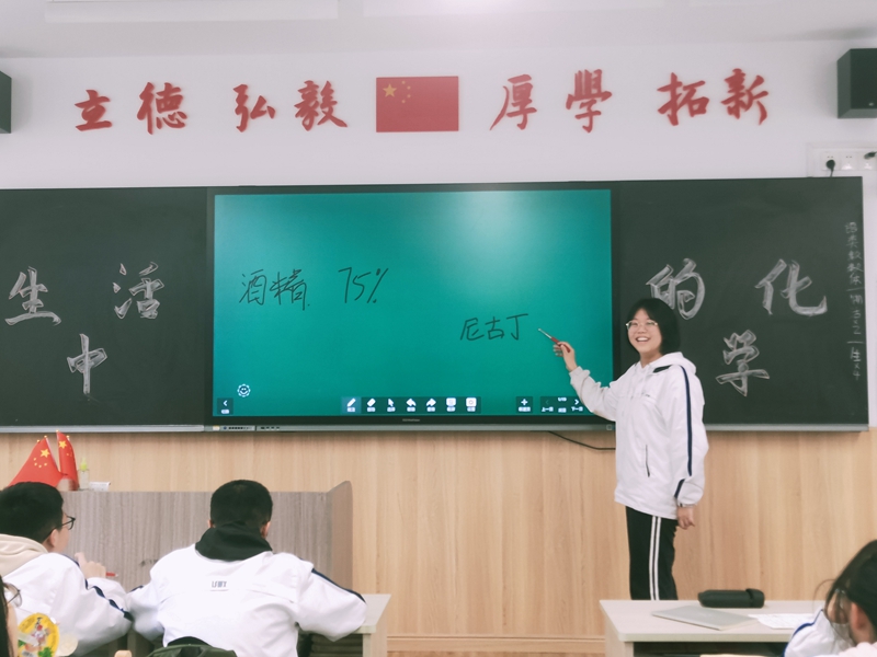 为提高同学们学习化学的兴趣,开拓化学视野,在辅助课内化学学习的基础上了解课外化学知识,化学教研组还积极打造了化学主题活动课,让学生在化学活动中感受快乐,在快乐中学习。