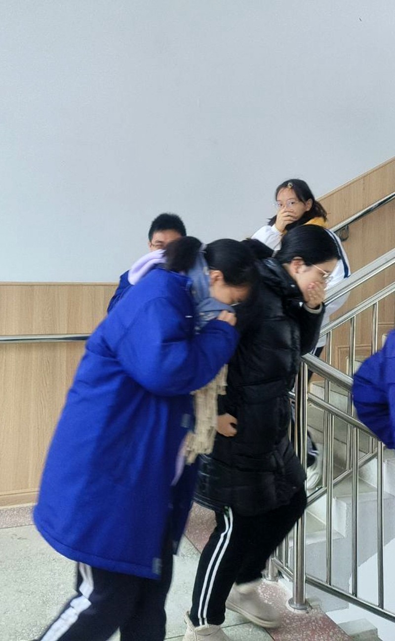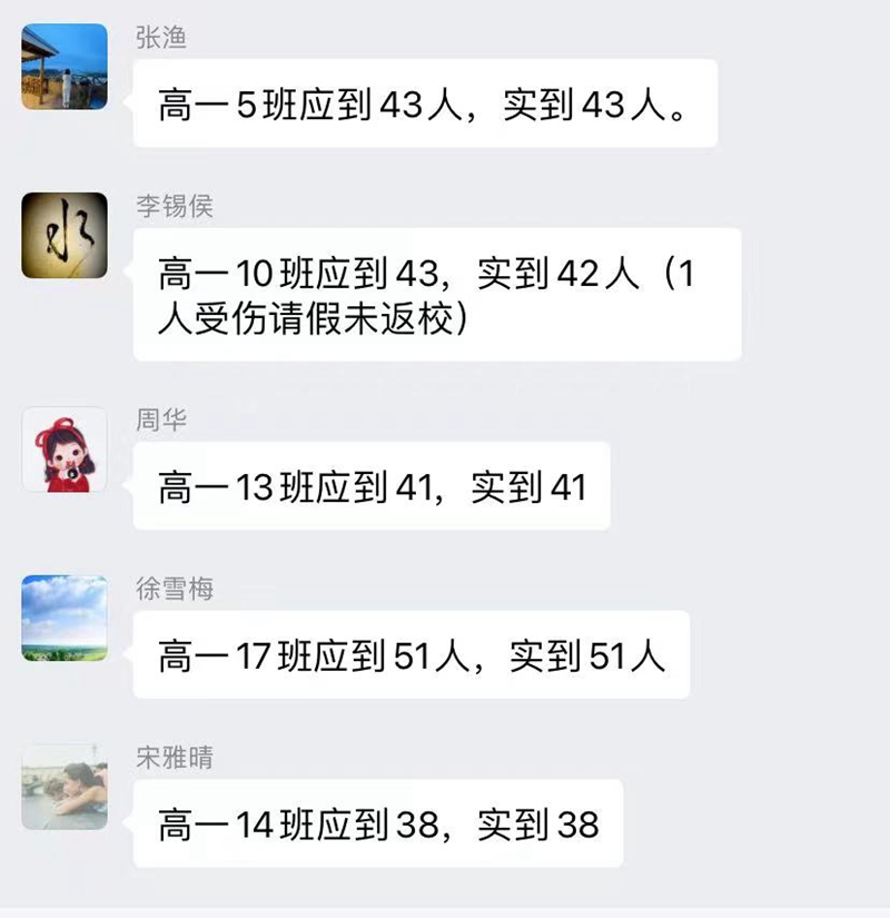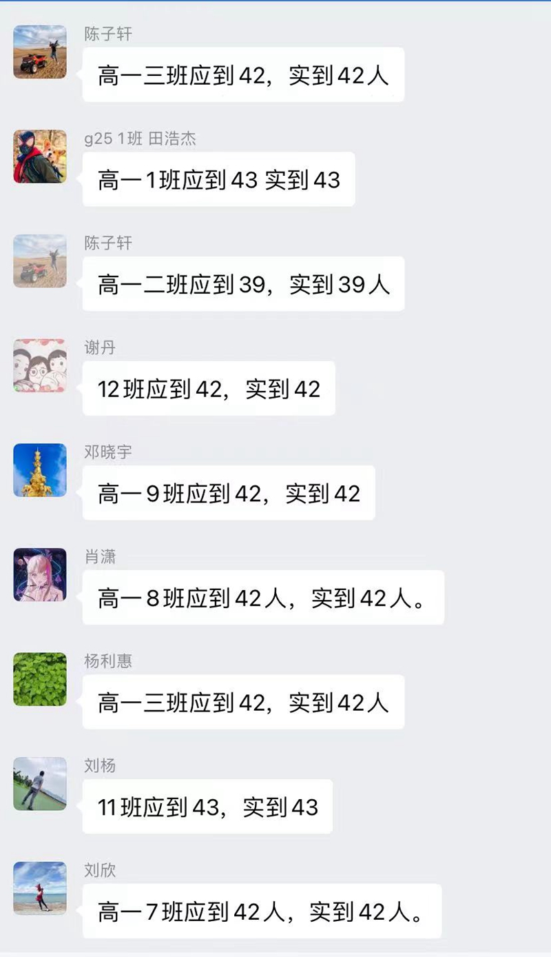 各班师生有序撤离到操场后,班主任整队并清点人数,年级助理汇总到位情况并上报给主席台总指挥。