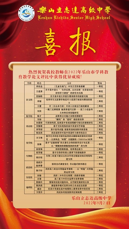 乐山立志达高级中学党政工团在此祝愿大家身体安康,阖家欢乐,万事胜意!