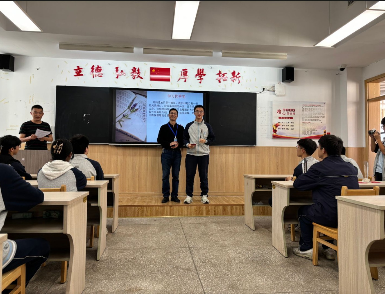 18班罗俊喆克服了曾经的彷徨与退缩,以坚定的意志迎接挑战,在奋斗中实现了自我超越。两位同学获奖,实至名归!副校长邓晓宇为他们一一颁奖。