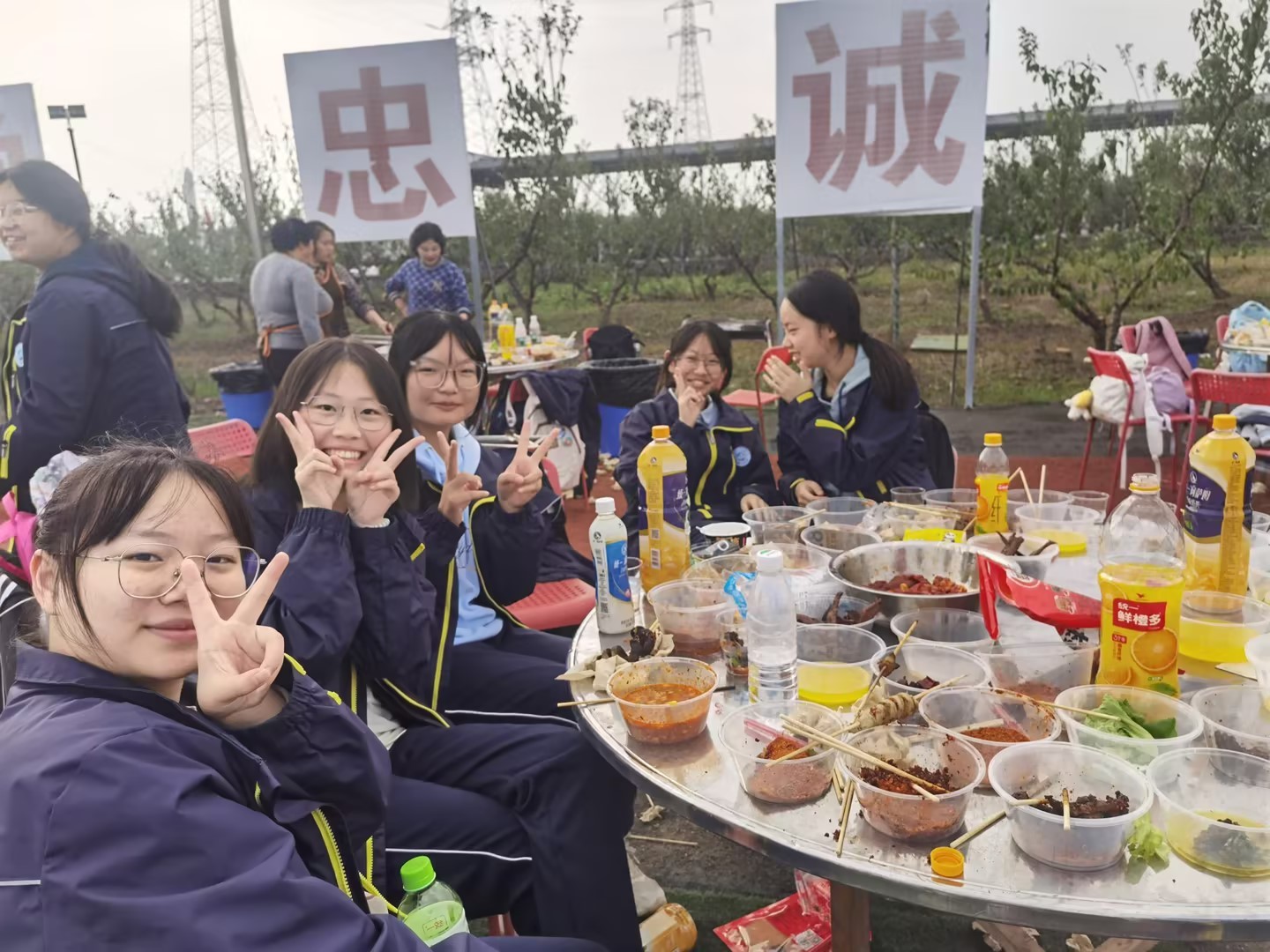 经过了三个多小时的路程后,同学们抵达了本次徒步的终点——乐山冲锋户外拓展基地。午餐时间,同学们有序按照桌号入座,他们迅速分工,各司其职。涮油、翻烤、分盘,相互“投喂”、畅饮欢笑……师生相互分享喜怒哀乐,将徒步的疲惫一扫而空。
